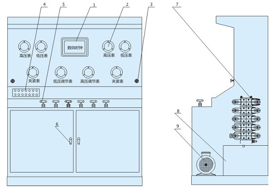 1. 數(shù)碼時鐘 2. 壓力表 3. 壓力表開關