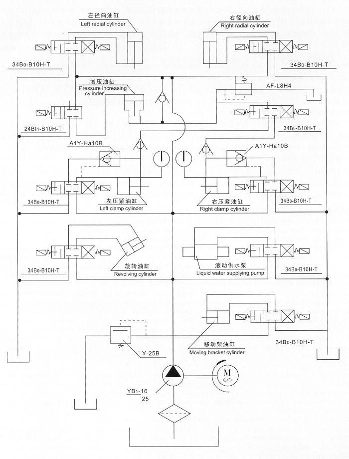 三、接通電源,按油泵啟動按鈕,檢查電機轉動方向,是否正確(順時針方向)進行5—1 O分鐘空載運轉后,調節(jié)油泵壓力在5 0MPa進行試機,各種動作,檢查各管路有無泄漏,發(fā)現(xiàn)不良現(xiàn)象,應立即停機排除。