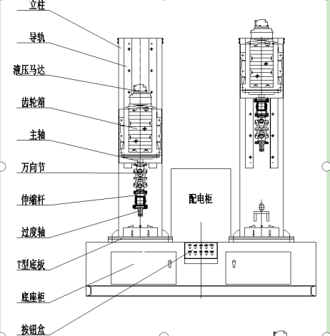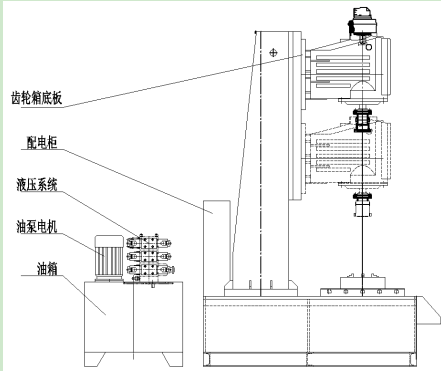 JLX型旋塞閥研磨機由立柱機架、導軌及升降機構(gòu)、齒輪箱旋轉(zhuǎn)機構(gòu)、裝夾機構(gòu)等組成,旋轉(zhuǎn)機構(gòu)的旋轉(zhuǎn)中心線相互垂直。立柱與齒輪箱底板的升降功能通過液壓油缸來實現(xiàn),通過按鈕可進行上升或下降。